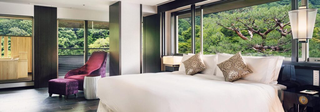 Later, you step into your private open-air bath, surrounded by Kyoto’s scenery.