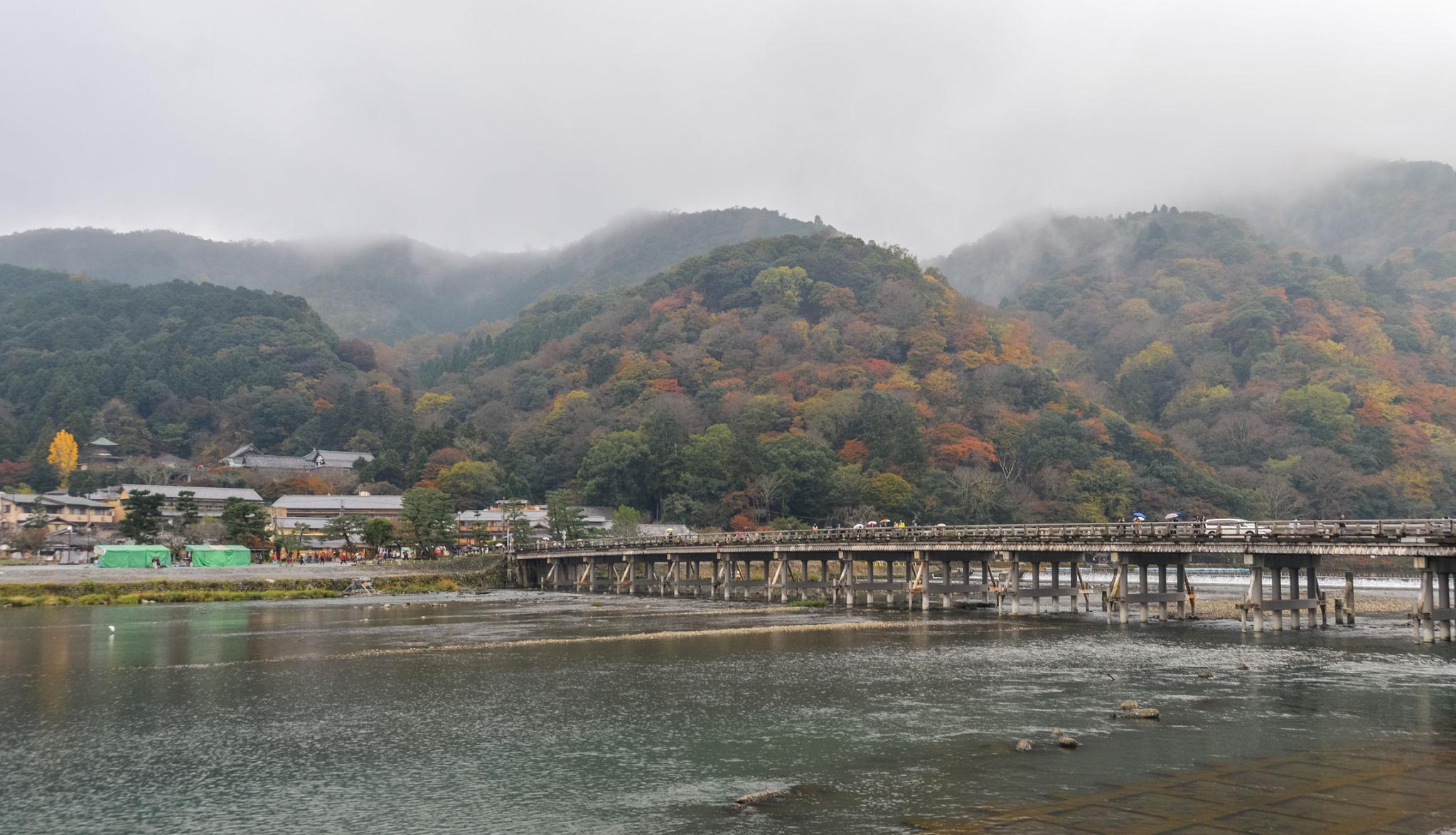 Outside, the iconic Togetsukyo Bridge stretches across the river.