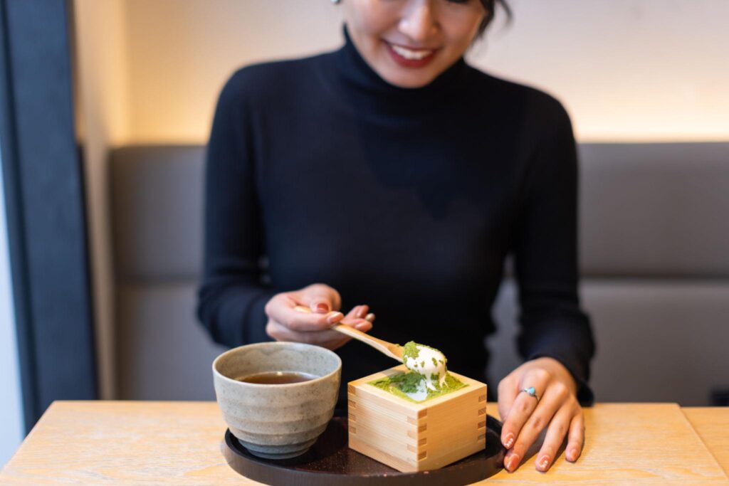 You’re sitting in a quiet café in Kyoto. Soft light filters through the window. In front of you is a small plate—beautifully arranged sweets and a cup of green matcha tea.